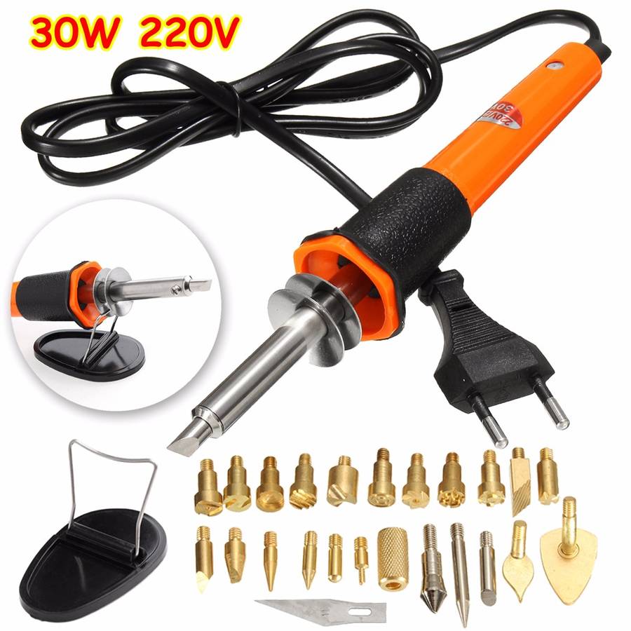 26pcs 30W Wood Burning Iron Pen Tip Set Pyrography Kit Leather Embossing Craft