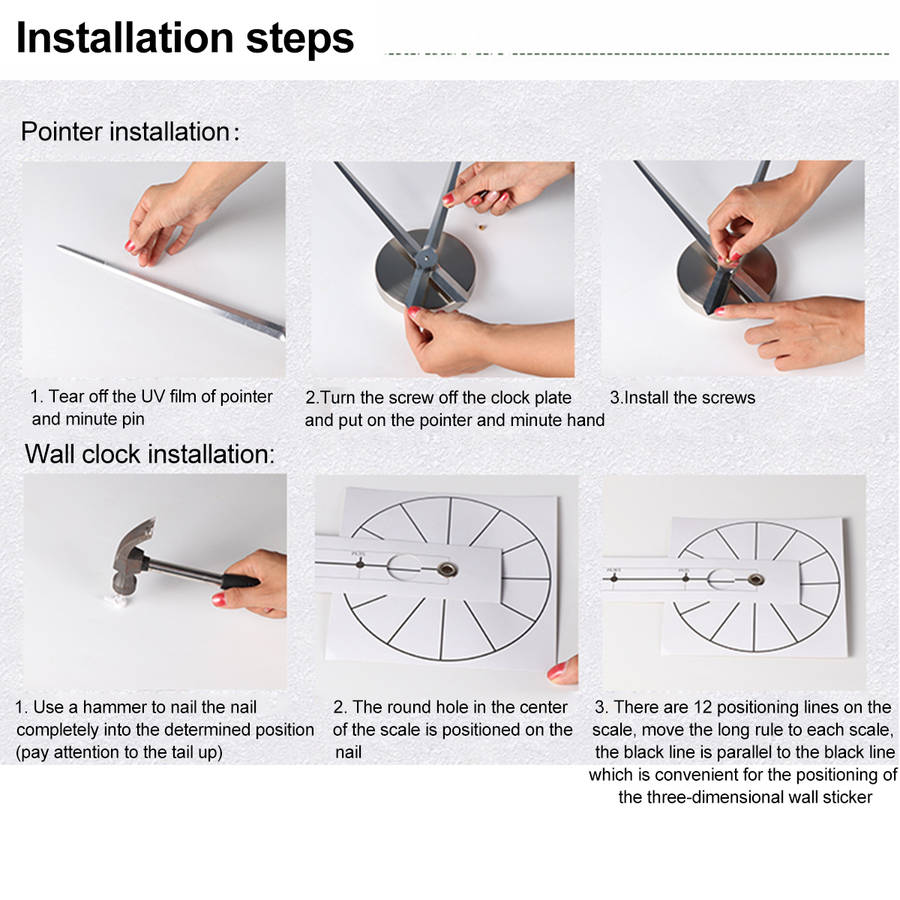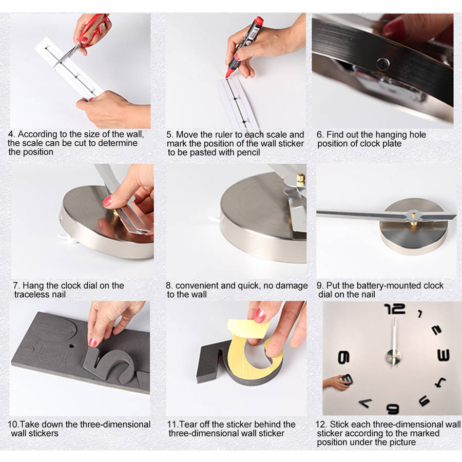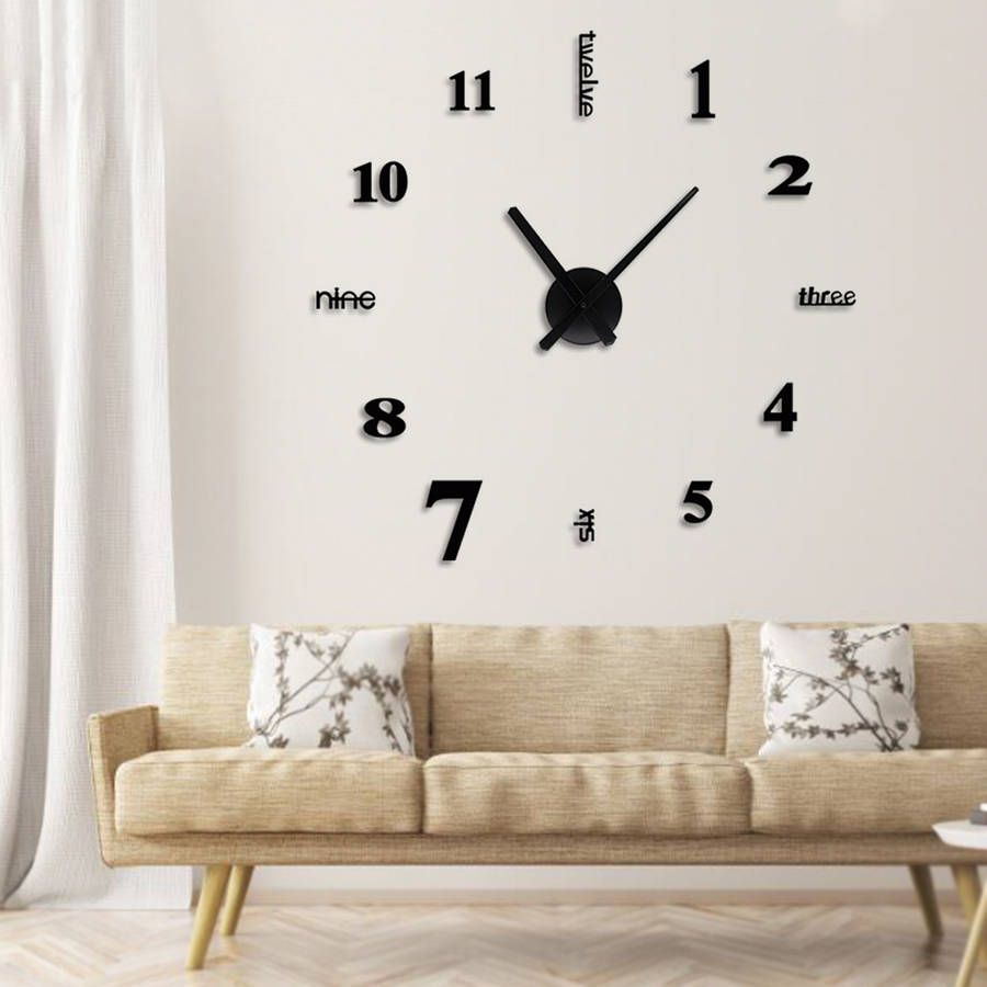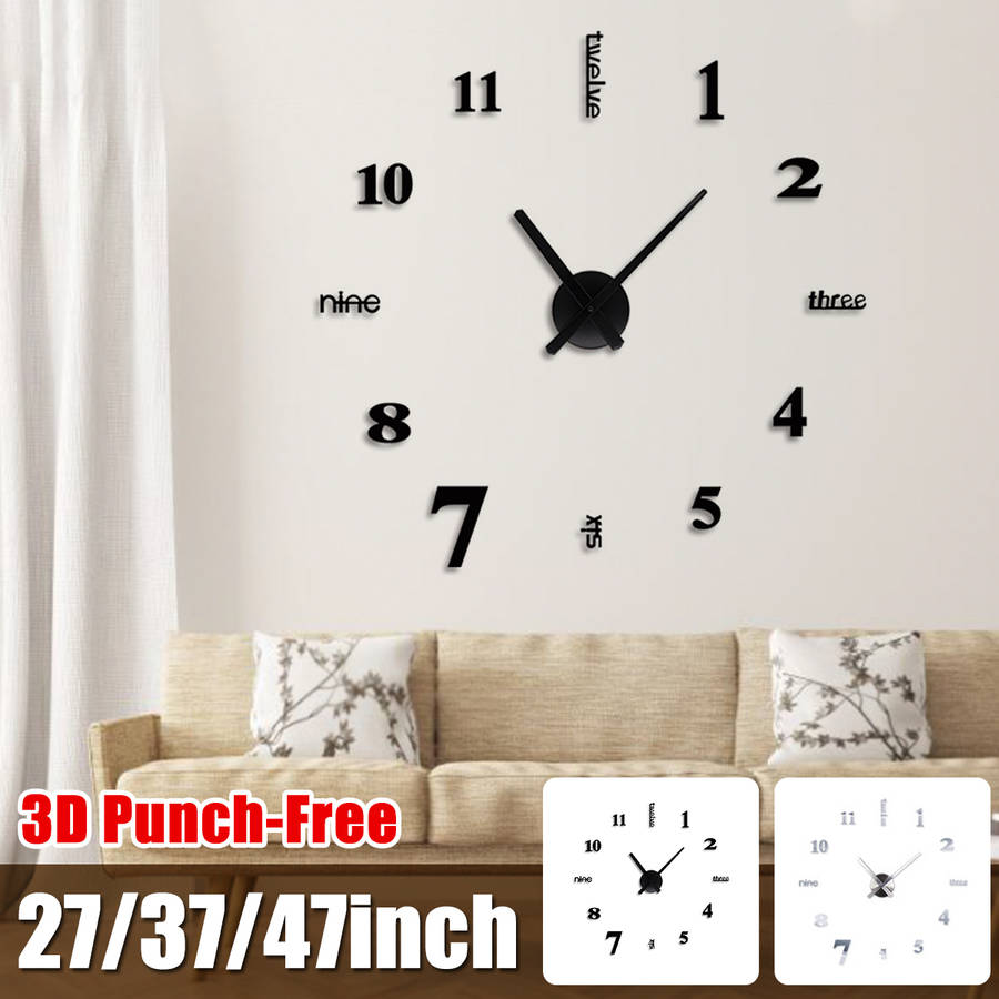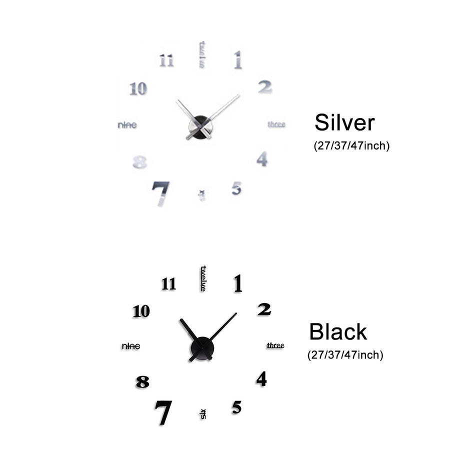 27/37/47Inch Black/White DIY Wall Clock Silent Quartz Wall Night C... (INCH: 37INCH | COLOR: SILVER)