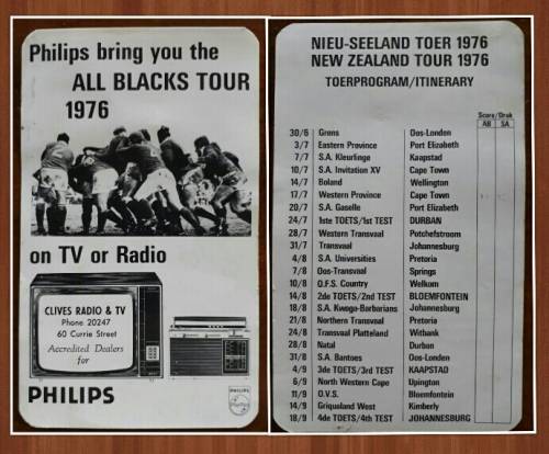 Below : Philips 1976 All Black rugby tour to South Africa itinerary (150mm x 90mm) :