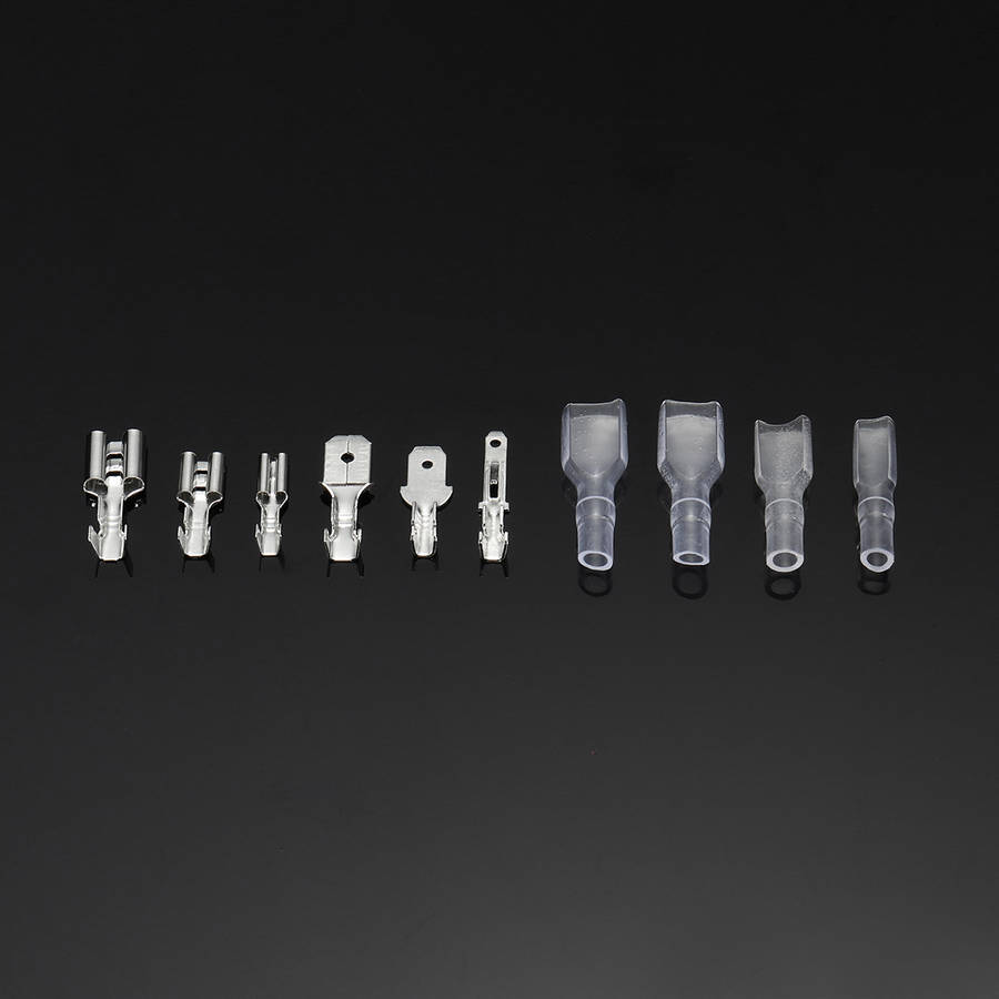 This is a male and female spade crimp terminal connector assorted kit including 2.8mm/4.8mm/6.3mm type with insulating sleeves.