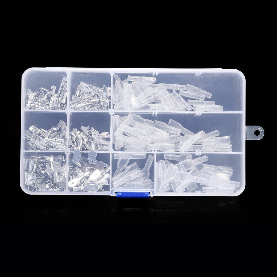 270 Pcs 2.8mm 4.8mm 6.3mm Female & Male Spade Crimp Terminal Connector Set Specification: Color: Silver+Clear