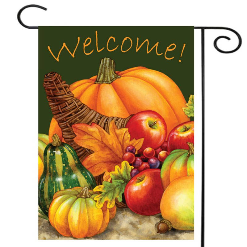 28 x 40 Pumpkin Harvest Cornucopia Welcome Autumn Fall Garden Flag Yard Banner