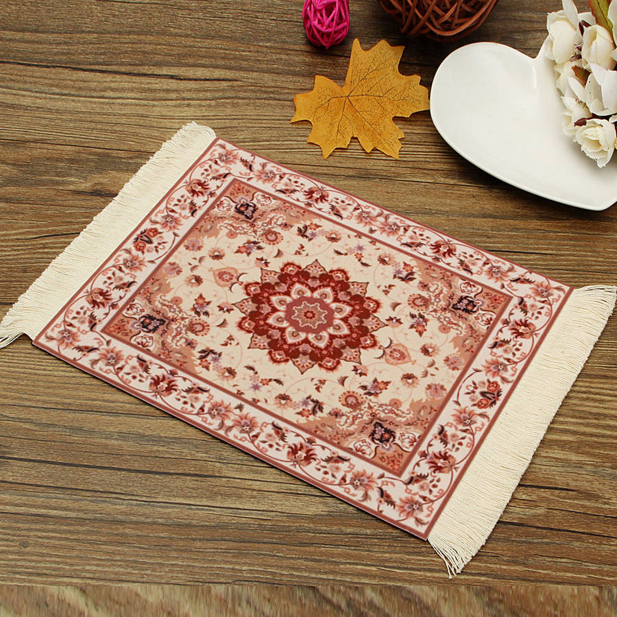 1X 28X18cm Persian Style Mini Woven Rug Mouse Pad Carpet Mousemat With Fringe