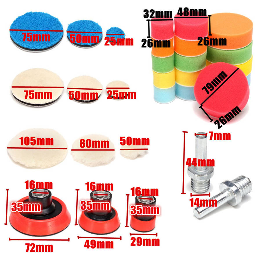 29pcs Polishing Pad Kit With M14 Thread Back Pad And Adapter For Polishing Waxi 29pcs Polishing Pad Kit With M14 Thread Back Pad And Adapter For Polishing Waxi
