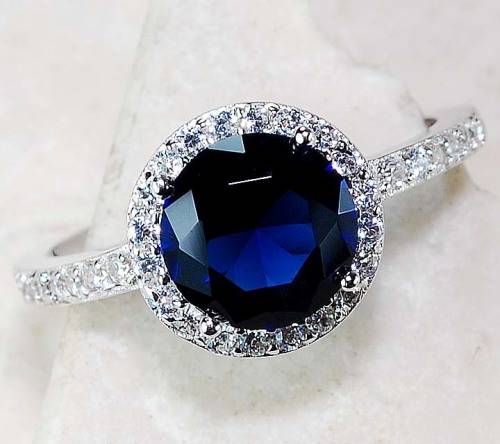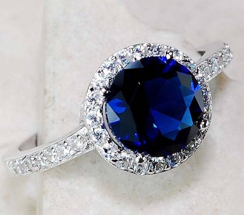 2 CARATS BLUE SAPPHIRE, WHITE TOPAZ, GENUINE 925 SOLID STERLING SILVER RING