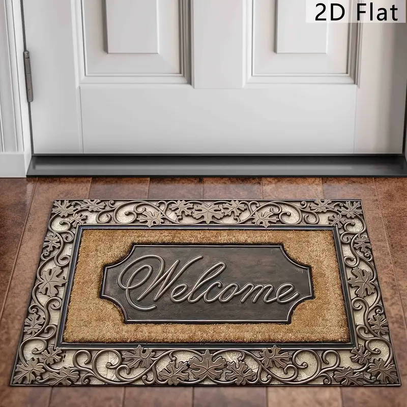 2D Flat, 1-Pack Welcome Home Non-Slip Mat - 6mm Thick, 100% Polyester, Rubber Backing, Abstract Line and Floral Pattern, Machine Washable, Absorbent Mat for Bathroom Entry Doors, Durable Holiday Decorative Mat (Christmas, Mother's Day, Graduation) - Available in Multiple Sizes, Bathroom Mat, Elegant Door Decoration, Intricate Pattern Detail, 2D Flat