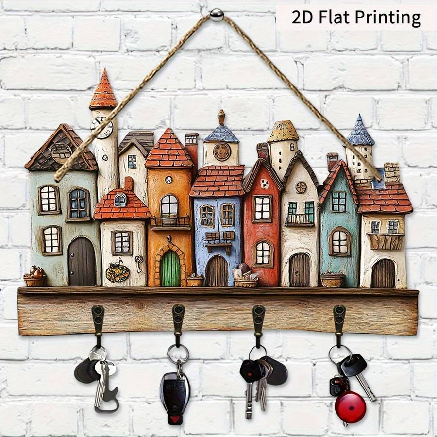 2D Flat Wooden Townhouse - Home Wooden Key Holder 29.97 cm x 22.86 cm with Four Metal Hooks - Multif Color sent randomly Material:Manufactured wood Style:Lodge Holidays:Easter,Hanukkah,Thanksgiving,New Year,Universal Item ID:CC1567191 Origin:Jiangxi,China
