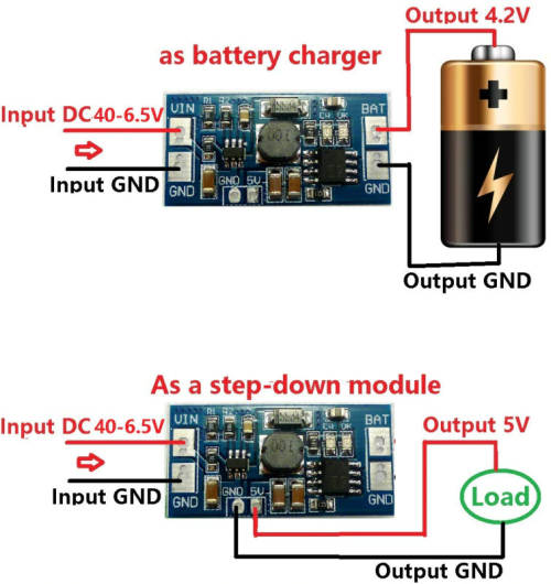 Output 2: DC 5V / 0-1A (As 6.5-40V to 5V Step Down Module)