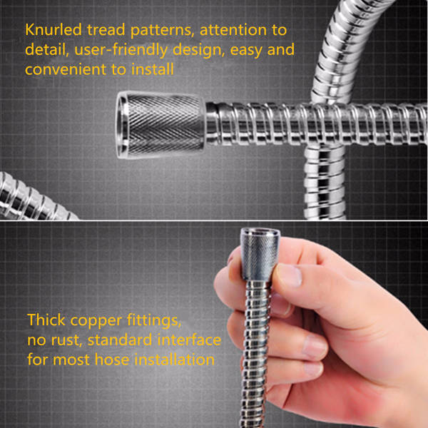 2M Long Standard Flexible Bathroom Shower Head Hose Stainless Steel Chrome Pipe
