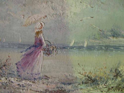 2PC BLUE OIL PAINTINGS SIGNED BY J.MILLER