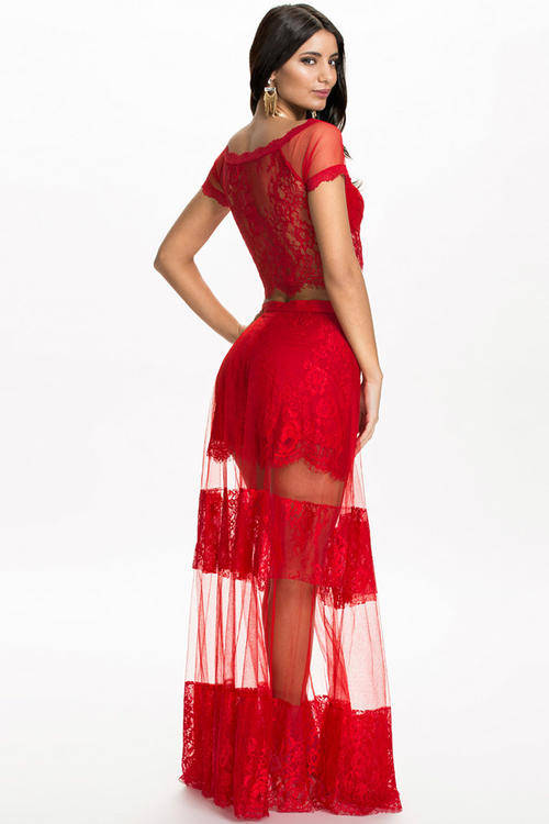 2PC STUNNING SHEER MESH & LACE DETAIL MAXI SKIRT SET