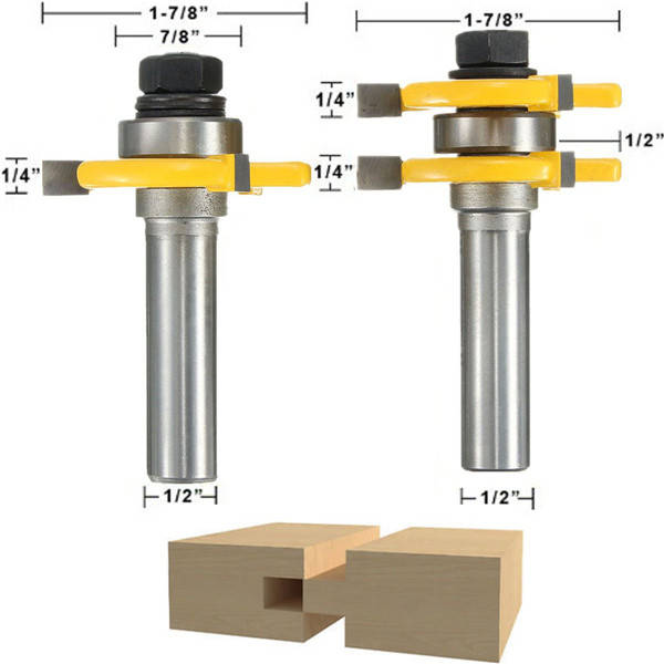 2pcs 1/2 Inch Shank Tongue & Groove Router Bit Set 3 Teeth T-shape Wood Milling Cutter