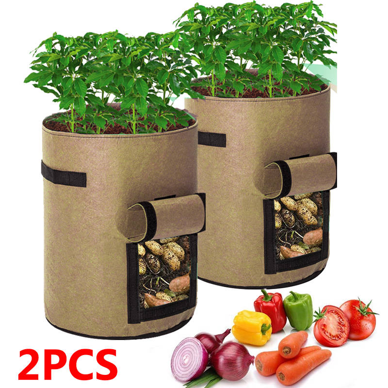2Pcs 10 Gallon 10L Khaki Potato Planting Bag Pot Planter Vegetable Container Growing Garden
