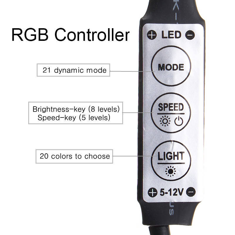 With 3 button mini controller for flash regulation, color changing and speed control.