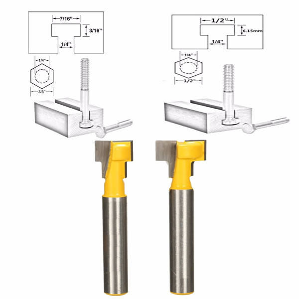 Description:2pcs 9.52mm and 12.7mm Keyhole Blades T-Slot Cutter Woodworking Router Bits Set