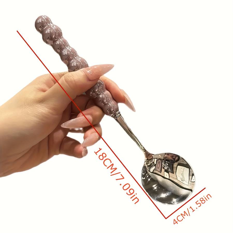 2pcs Colorful Pearl Stainless Steel Teaspoons, Kitchen and Dining Utensils, Dessert Spoons, Hom Random Color Random style Material:Stainless Steel Item ID:HN390011