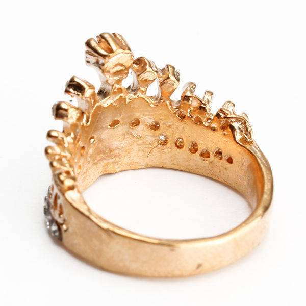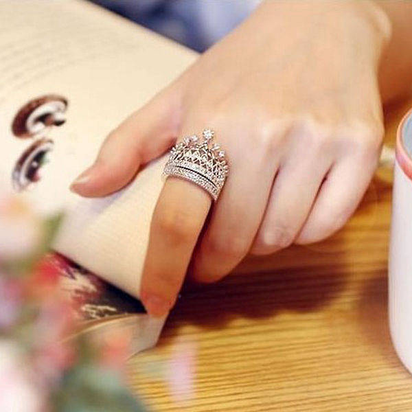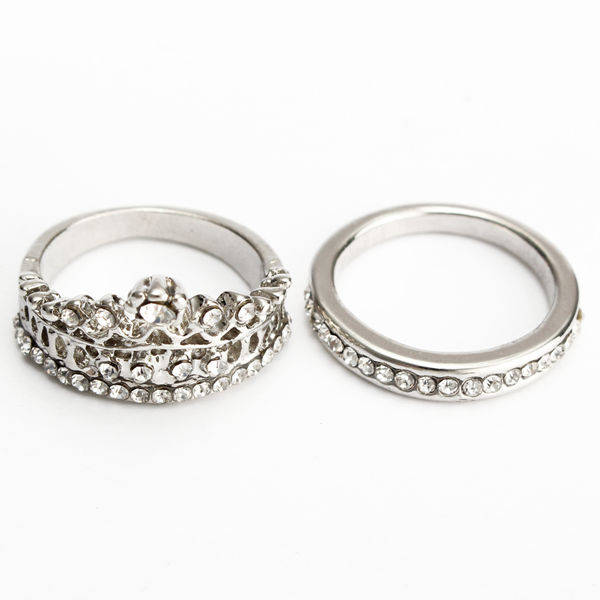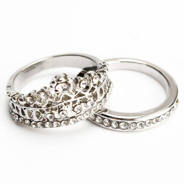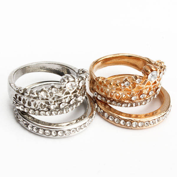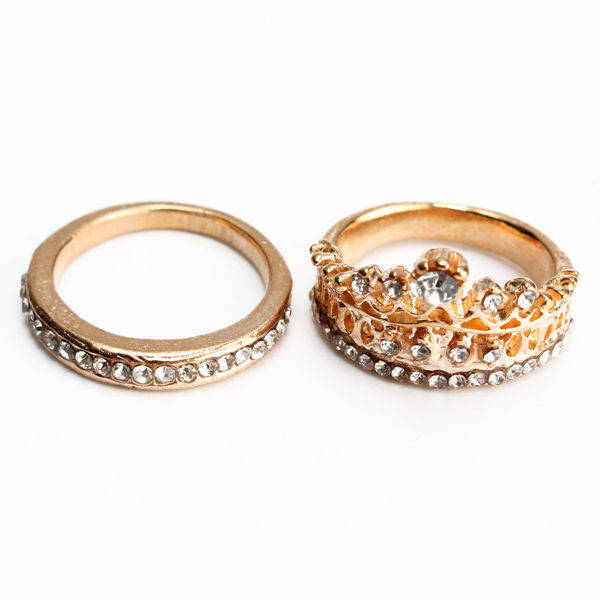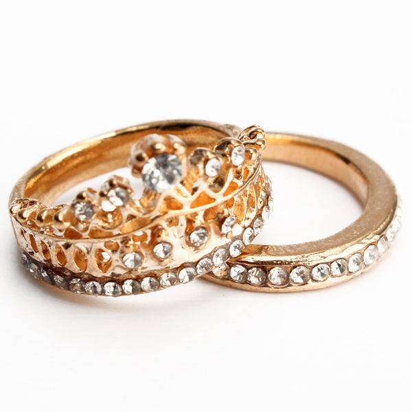 2Pcs Elegant Gold Silver Crystal Rhinestone Crown Rings For Women