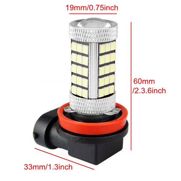 Note: 1. Do not disassemble any bulbs by yourself. 2. Be sure to cut the power off before beginning installation to avoid personal injury. 3. Make sure this is the correct application type of bulb before placing order. Fitment: Fog lights, daytime running lights, etc. Package Included: 2 X H11 2835 63SMD Light Bulb