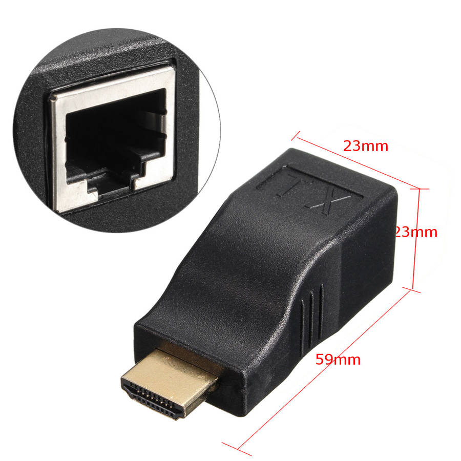 2Pcs HDMI to RJ45 Network Lan Ethernet Cable Extender Over by Cat 5e/6 HD 1080P 3D