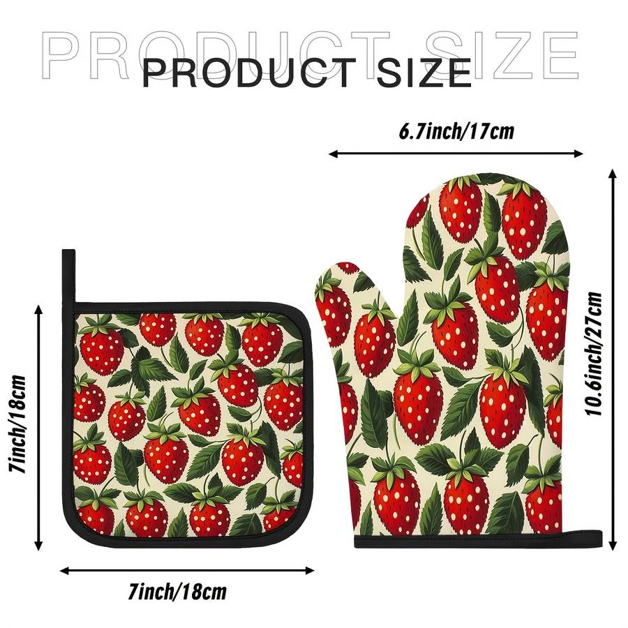 2pcs Vintage Strawberry Kitchen Mitts & Pot Holders Set - Heat Resistant, Microwave Gloves & Pa
