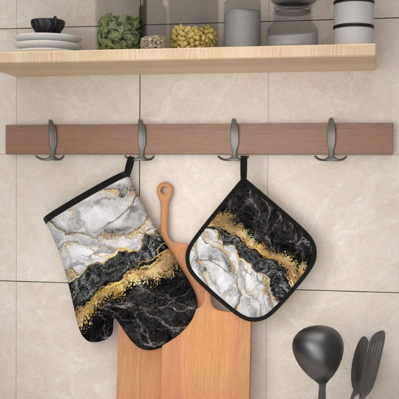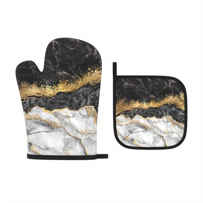 2pcs Marble Pattern Oven Mitt Set, 26.92*17.02 cm, Heat Resistant Polyester Kitchen Gloves and