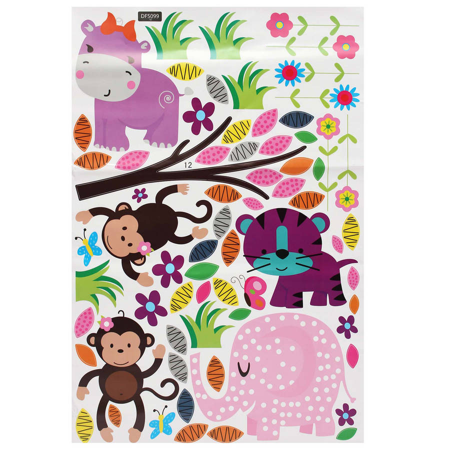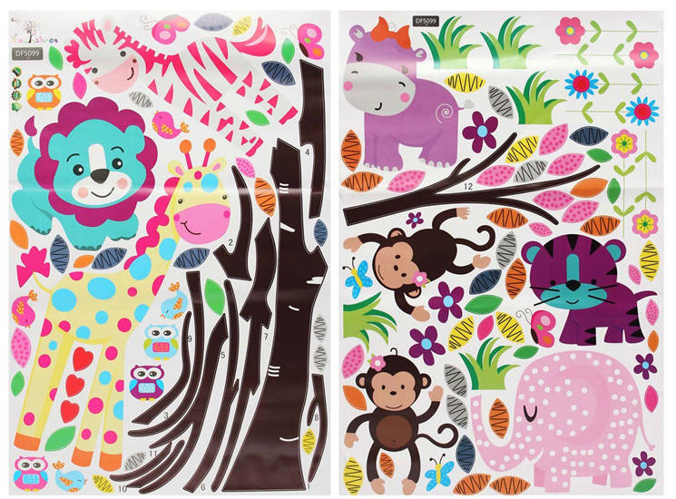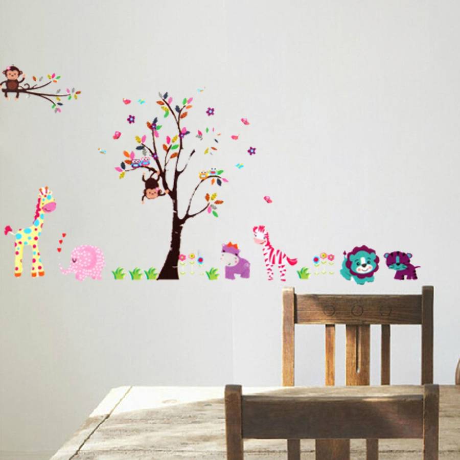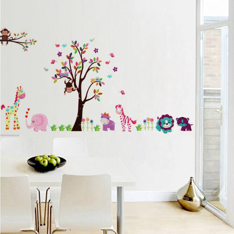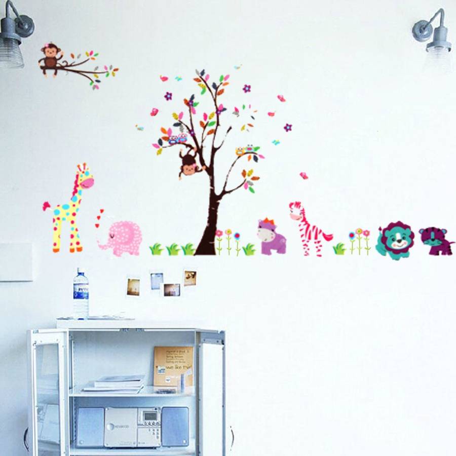 2Pcs Large Jungle Tree Wall Sticker Kids Nursery Decals Girls Bedroom Mural Animals