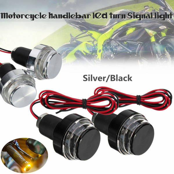 2PCS Motorcycle Handlebar LED Turn Signal Grip Bar End Amber Lights