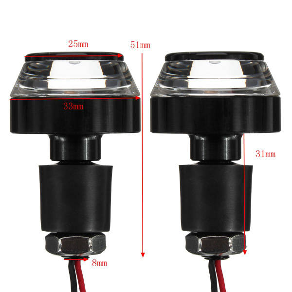 Material: Aluminum Alloy Light Color:Amber (As the picture shown) Head Diameter :33mm Overall Length:51mm Placement On Vehicle: Left, Right Fitment: Fit 1" or 7/8" bars Voltage: 12V Wiring: Negative Pole: Black Wire Positive Pole: Red Wire