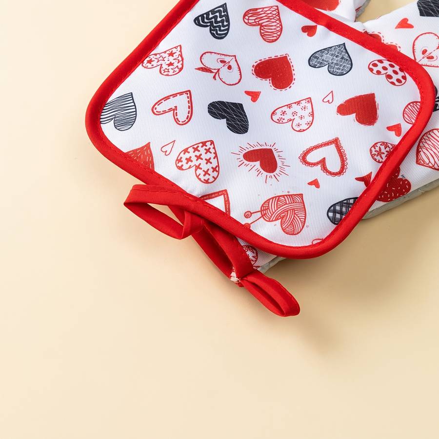 2pcs Valentine'S Day Kitchen Oven Gloves Set Polyester 100% Heat Resistant Baking Mitts Digit