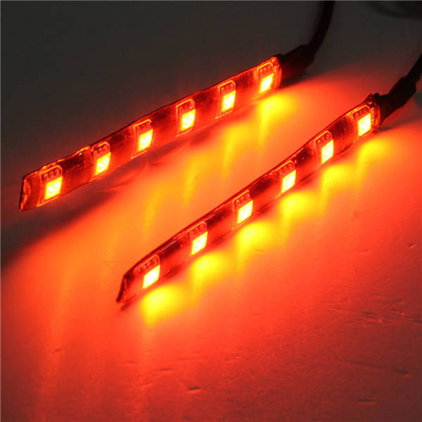 2pcs Universal Amber 6 LED Motorcycle Strip Turn Signal Indicator Blinker Light
