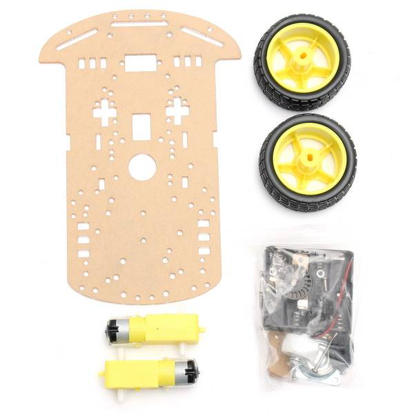 1 x Car chassis 2 x Car Wheels 2 x DC Gear Motor 2 x 20 line gun code disk 4 x Fasteners (high intensity black acrylic) 1 x Caster 1 x Four battery box 1 x Quality Rocker Switch 1 x Assembly drawing 1 x V5 shield 1 x UNO R3 1 x SG90 1 x FPV 1 x L298N Several screw nut