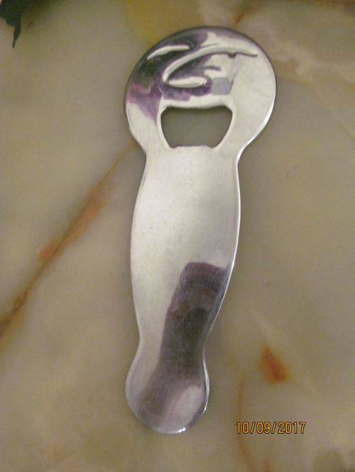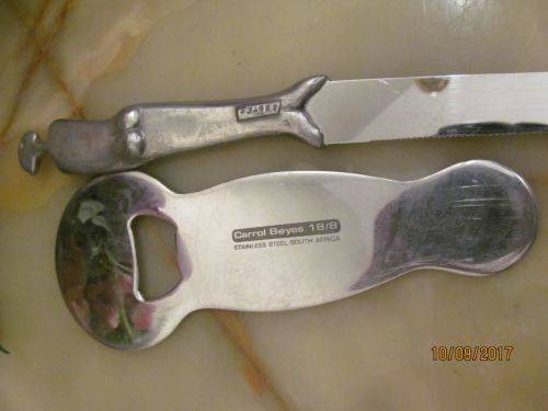 2)- BOTTLE OPENER (OH! PENER) IN PERFECT CONDITION WITH NO DAMAGES, RUST, DENTS ETC. STAMPED - "CARROL BOYES 18/8, STAINLESS STEEL, SOUTH AFRICA" 16.2cm LENGTH.....6.4cm WIDTH AT TOP