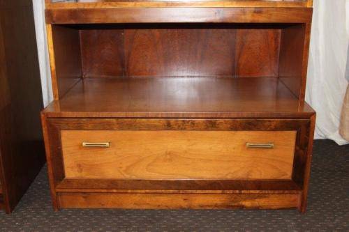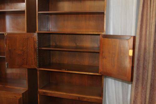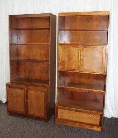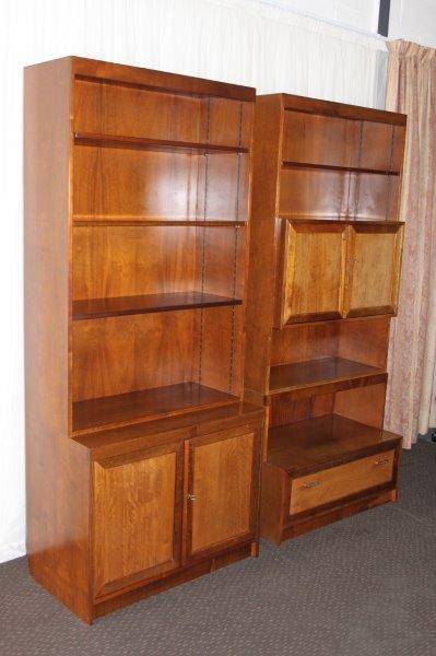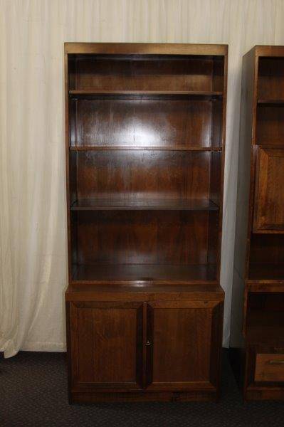 THESE TWO INCREDIBLE TALL SOLIDLY MADE SOLID TEAK OFFICE CABINETS HAVE AMPLE SHELF AND CUPBOARDS SPACE. EACH OF THE TWO CABINETS MEASURE 900mm LONG x 500mm WIDE x 2070mm HIGH. THEY COULD BE POSITIONED SIDE BY SIDE OR SEPARATELY. BOTH THE CABINETS HAVE KEYS FOR THE CUPBOARDS. THE SHELVES ARE ADJUSTABLE AND THESE ARE THE PERFECT CABINETS FOR A STUDY, LIBRARY, EXECUTIVE'S OFFICE OR LIVING ROOM. THESE ARE TOP-END QUALITY CABINETS AND WITH AWESOME CLASSIC LINES. THE ONE CABINET ALSO HAS A LARGE STORAGE DRAWER. PLEASE VIEW THE PICS CAREFULLY TO FULLY APPRECIATE THESE FANTASTIC OFFICE CABINETS AND TO CONFIRM THE CONDITION.
