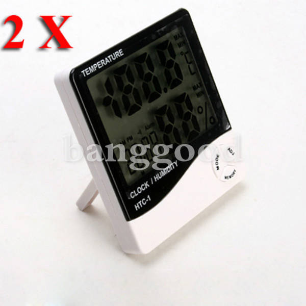 2X LCD Digital Temperature And Humidity Meter Hygrometer Clock Alarm