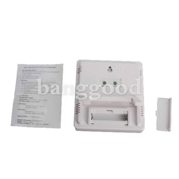 Display temperature,humidity and time simultaneously Memory of MAX & MIN measuring value 12-hour/24-hour displaying system selectable oC/o F unit selectable Integral-hour alarm function Alarm function Clock & Calendar function (month and date ) Desk-top placing or Wall Hanging Temperature range: -50~+70 oC (-58~+158oF ) Humidity range: 20%25~99%25RH