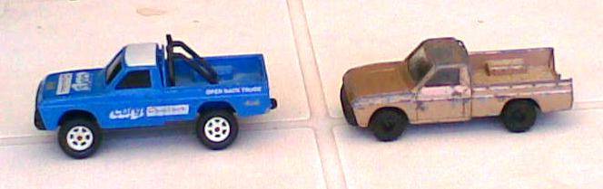 ÃÂÂÂ BLUE ONE IS A 4X4 WHILE THE OTHER IS NORMAL 1600 BAKKIE. TAILGATE MISSING ON GOLD UNIT OTHERWISE BOTH COMPLETE IN ÃÂÂÂ PLAYED WITH CONDITION. SERIOUS PAINT LOSS ON GOLD UNIT. BOTH CARS ARE RARE. A GOOD REFURBISHMENT PROJECT? SCALE GIVEN IS A GUIDE ONLY.