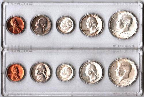 2x USA coin sets 1964 - Not Proof, Not UNC - 90% silver