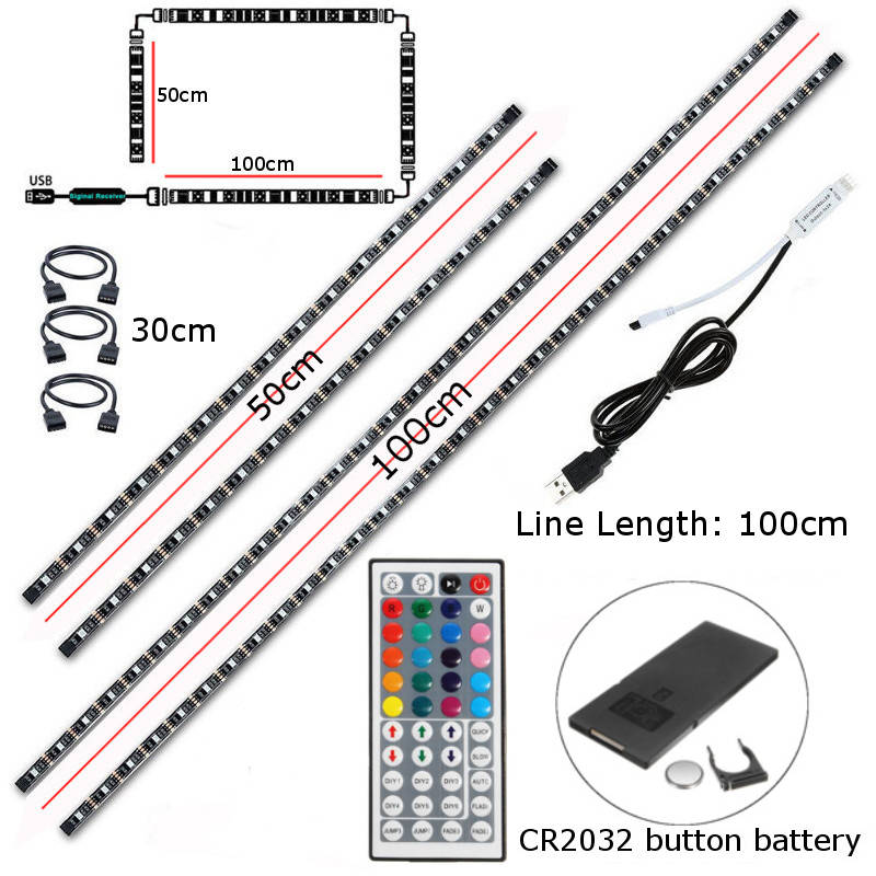2x50CM + 2x100CM USB SMD5050 RGB LED Strip Light TV Backlight Bar Kit + Remote