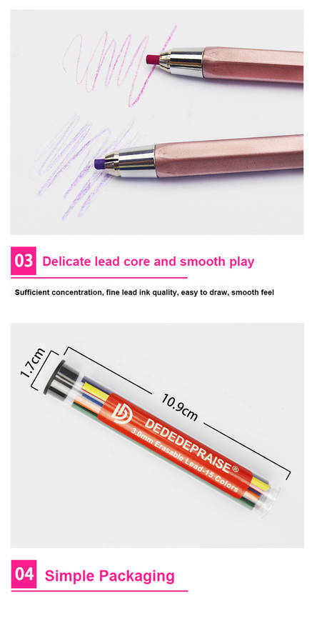 4.?The 3.0 mm lead core has low residual lead rate, fine color, smooth graphite painting concentration, and fine lead core ink quality.