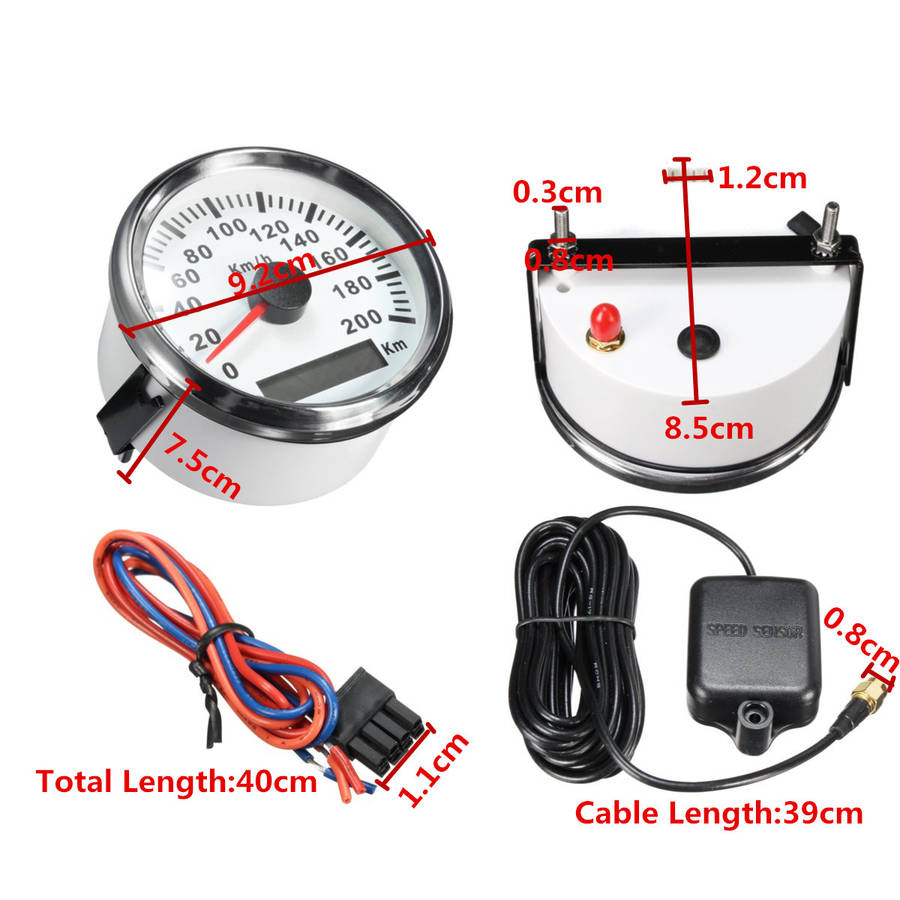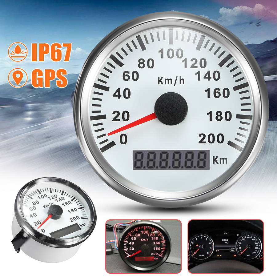 3.34 Inch Auto Car GPS Speed Meter Stainless Waterproof White Digital Gauge 200km/h