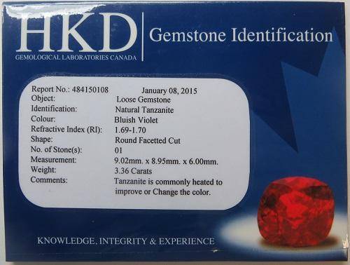 Magnified Picture of Actual Tanzanite sealed in Certificate Envelope (see description for actual size)