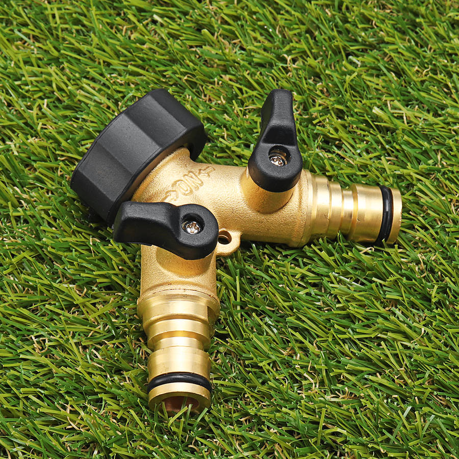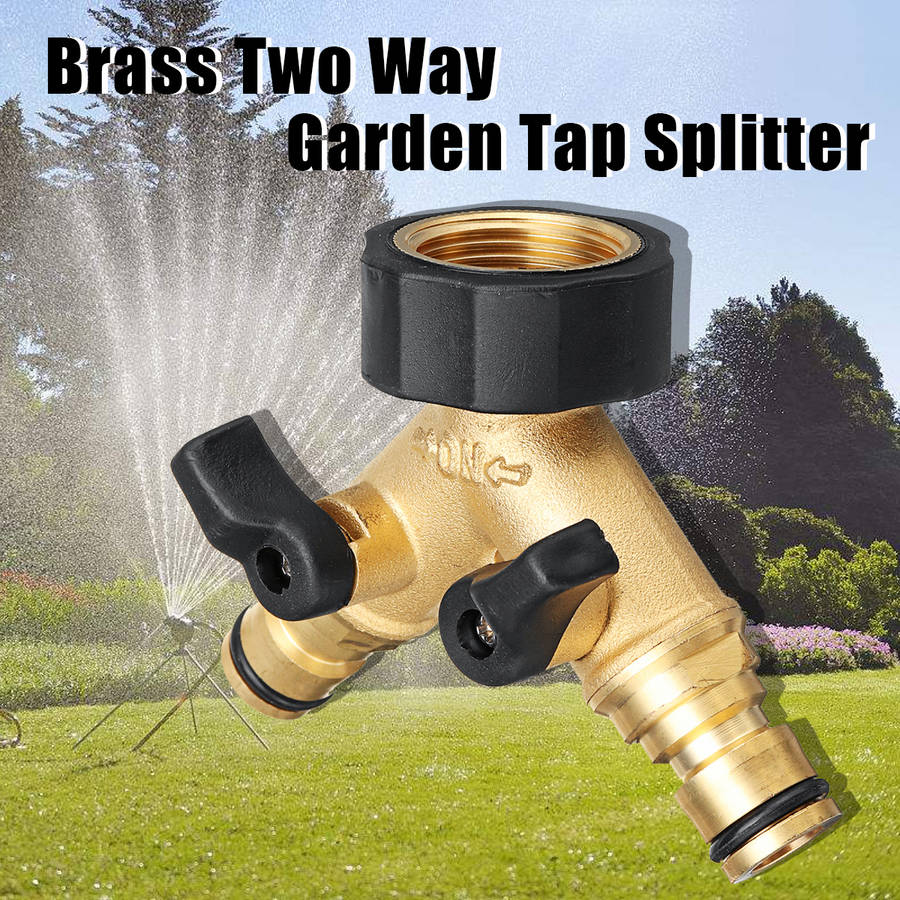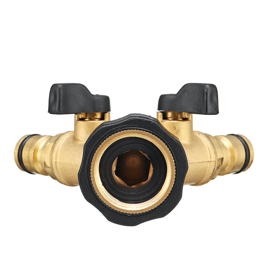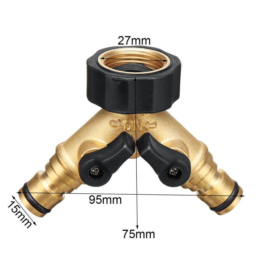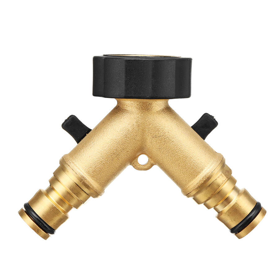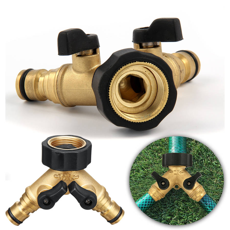 3/4 Brass 2 Way Hose Manifold Quick Connector Nozzle Y-Type Tap Water Splitter Garden Faucet Waterin