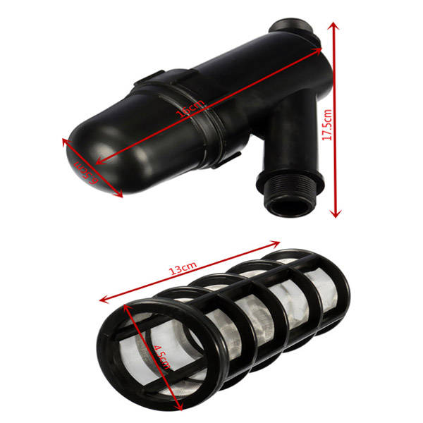 Specification: Screen filter dimensions: approx. 20x13x6.5cm Connection: male 3/4" Material: plastic + stainless steel mesh Color: black Flow: 5m³/ h Working pressure: 1-8kg