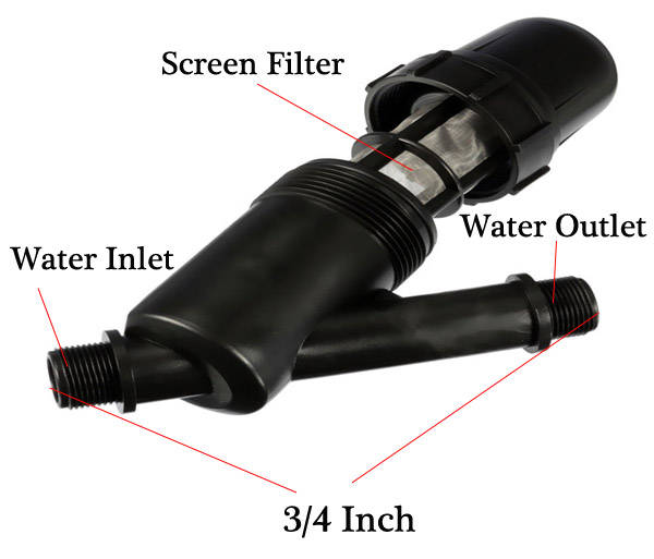Feature: Useful Y-filter controls debris Deep bed filter, effectively filter impurities Heavy duty plastic with maximum UV & oxidizer protection Stainless steel 120 mesh screen, easily removed for cleaning by unscrewing the threaded cap