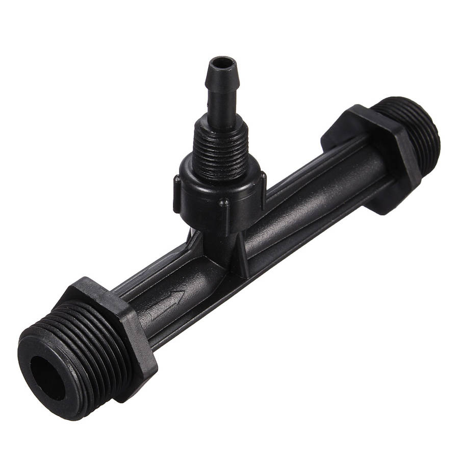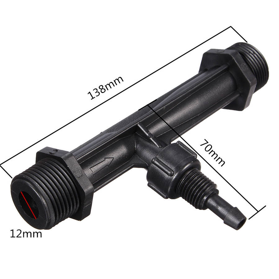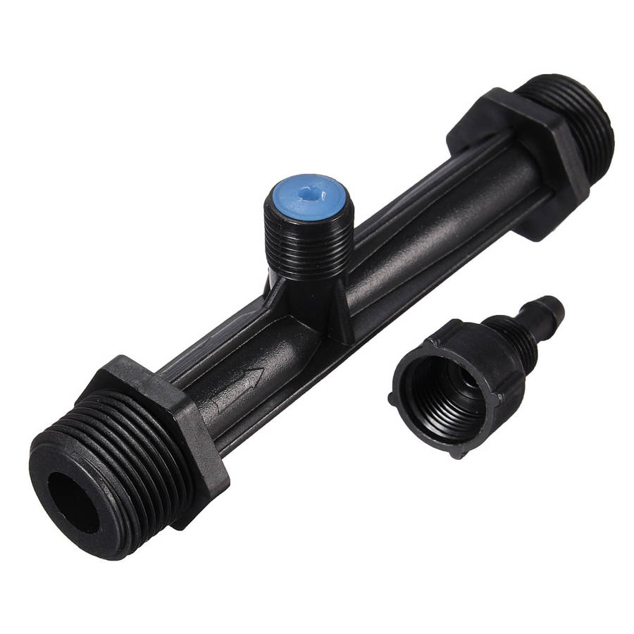 Package weight: 0.04 kg Description : Highly efficient and compact differential pressure injection device, the use of siphon principle. Fertilizer and chemical injection through drip and sprinkler irrigation systems. A venturi is a device which creates a vacuum when fluid flows through it. The fluid which creates the vacuum is known as the motive fluid. The motive fluid for irrigation injectors is the irrigation water itself. Vacuum created by the venturi sucks fertilizer or chemical into motive water.