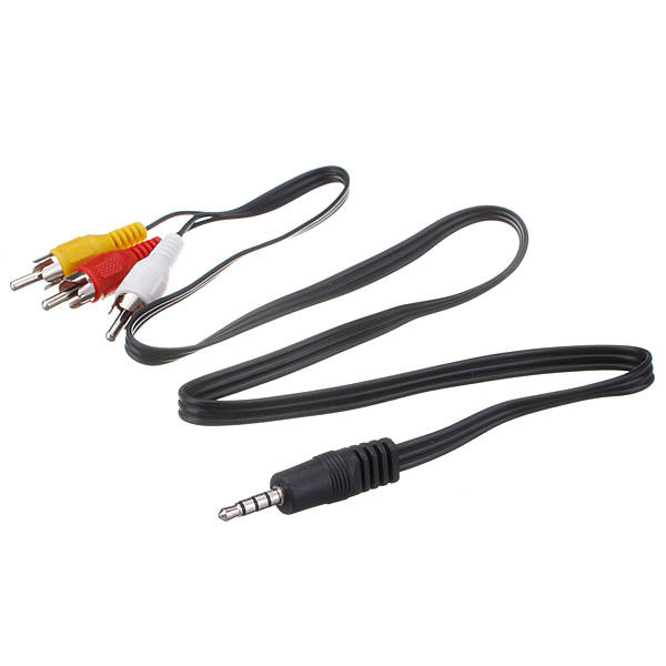 3.5mm Jack Plug to 3 RCA Adapter Cable Audio Video Cable Ideal for connecting your camcorder/DV to TV set or Vcr for video and stereo audio playback. Compatible with most MiniDV and Digital camcorders made by Sony, Canon, JVC, Samsung, Panasonic, Sharp and other brand camcorders that use a single 3.5mm (1/8') connector for exporting audio / video. 3.5mm AV Plug to Three RCA Plugs,approx 71.5 cm long 3 Standard RCA "R-AUDIO-L, VIDEO" (red-white-yellow) male connectors.