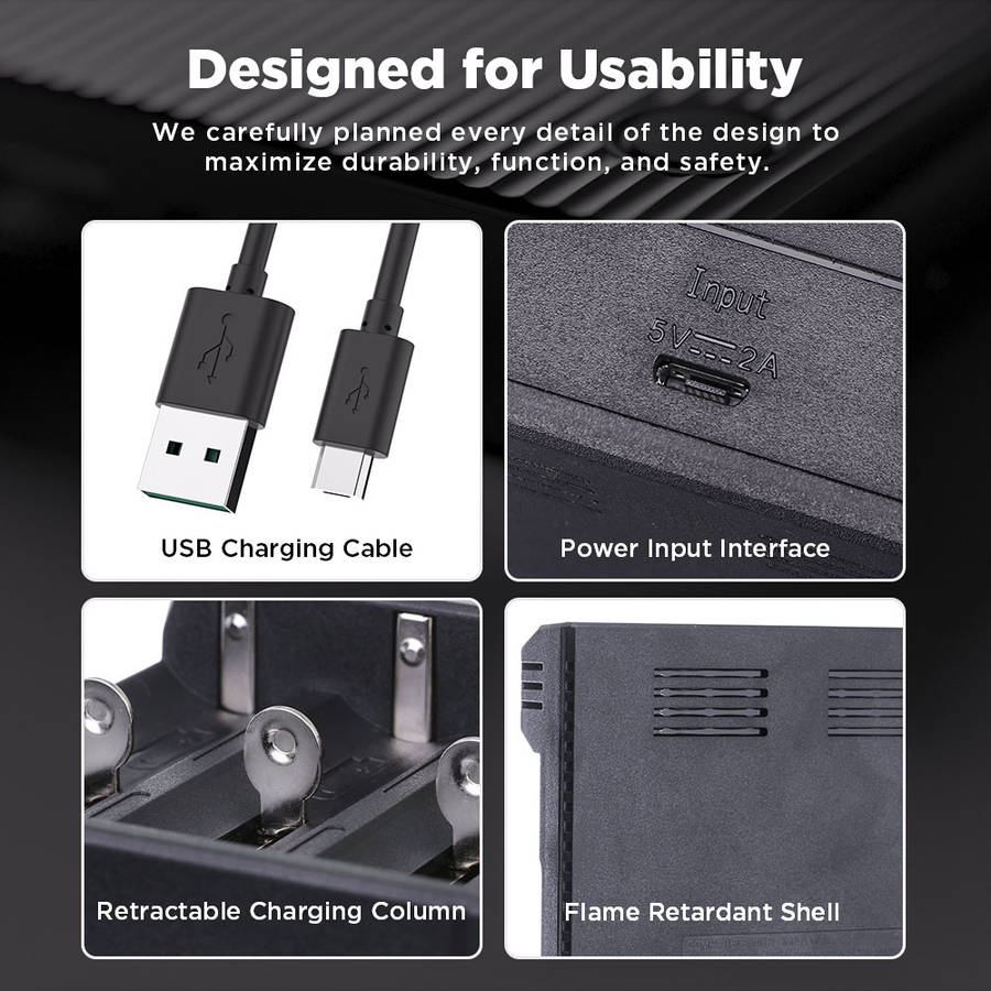 5.Upgrade the design of spring cabin, support multiple specifications 3.7V/4.2V lithium battery charging, 2A quick charging, quick and safe charging