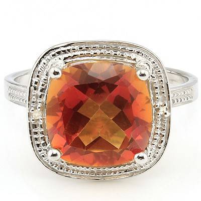 3.83 CT CREATED AZOTIC MYSTIC & 2 PCS WHITE DIAMOND 0.925 STERLING SILVER W/ PLATINUM RING