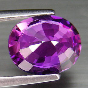 The colour of this sapphire may remind you of amethyst, but that is where the similarity ends. Sapphire is a corundum, so it has a much higher refractive index than amethyst. This means that it has much more glitter, flash and fire than an amethyst. A dark amethyst is pleasant to look at in bright sunlight, but is quite dull in a dark room. The opposite is true of purple sapphires. They are painful to look at in bright sunlight, because they sparkle so much, but are very attractive in shade or indirect lighting.