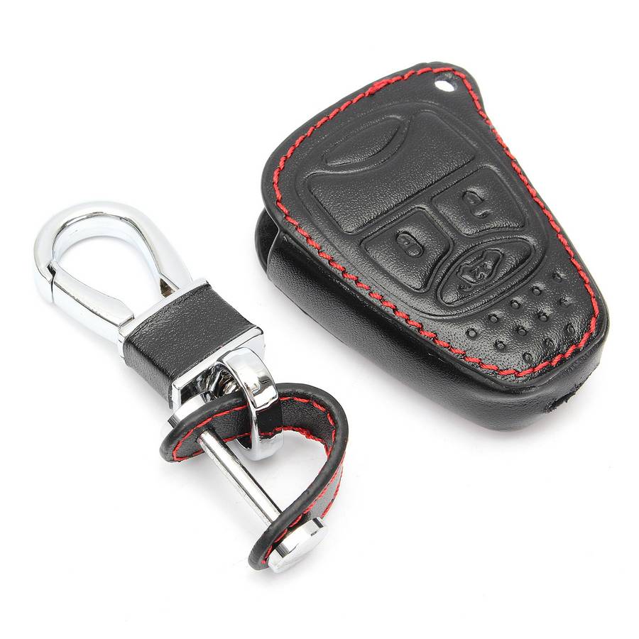 3 Buttons Leather Remote Car Key Chain Fob Cover Holder Protector for Jeep